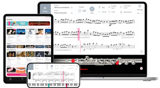 Thanks to the unique technology, the interactive scores automatically run along with the music on the screen. With features such as adjusting the tempo of music, visualising instrument fingerings in real time, repeating selected passages and self-recording, Tomplay makes learning music more effective, fun and immersive.